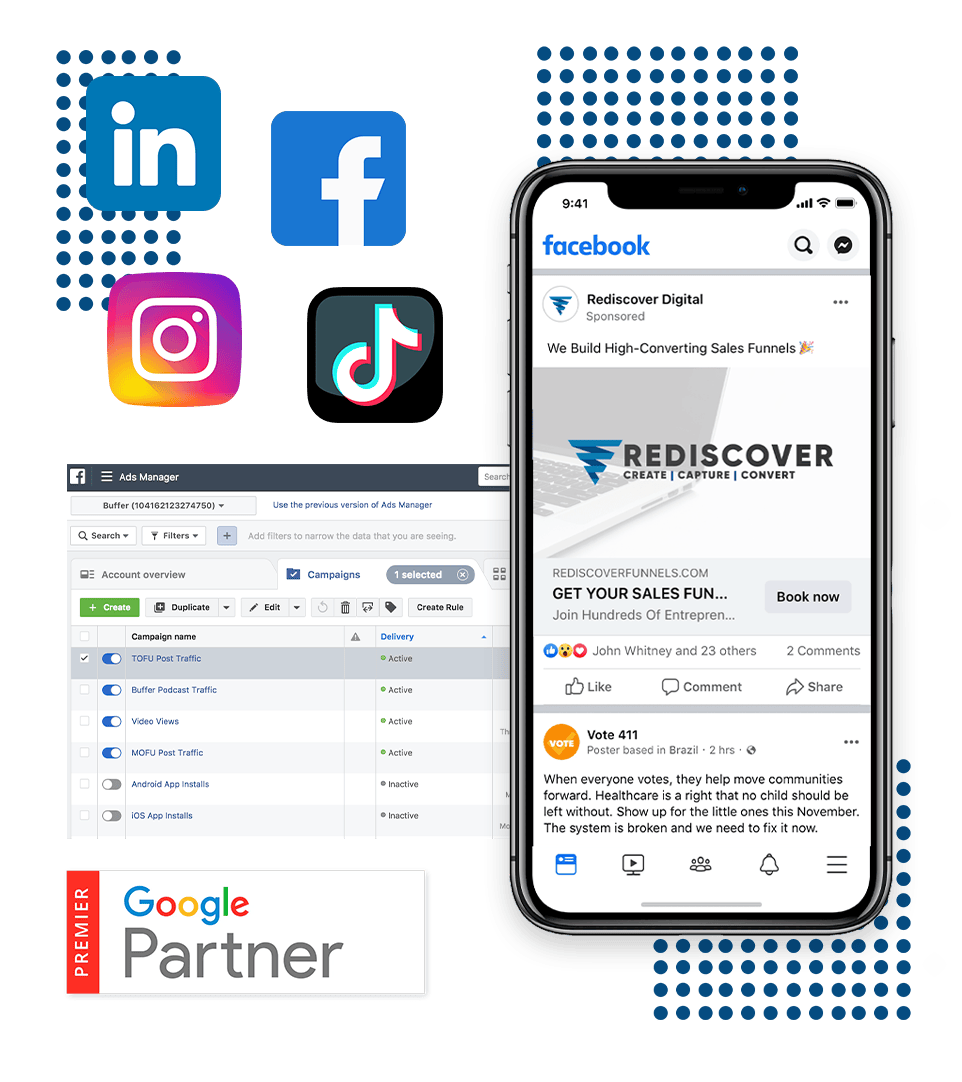 In today's digital age, social media platforms like Facebook, Instagram, and TikTok are not just trends – they're massive sources of opportunity for businesses like yours. At Rediscover Digital, we specialize in helping our clients harness the full potential of these cutting-edge platforms and the advanced AI technology within them to achieve remarkable results.